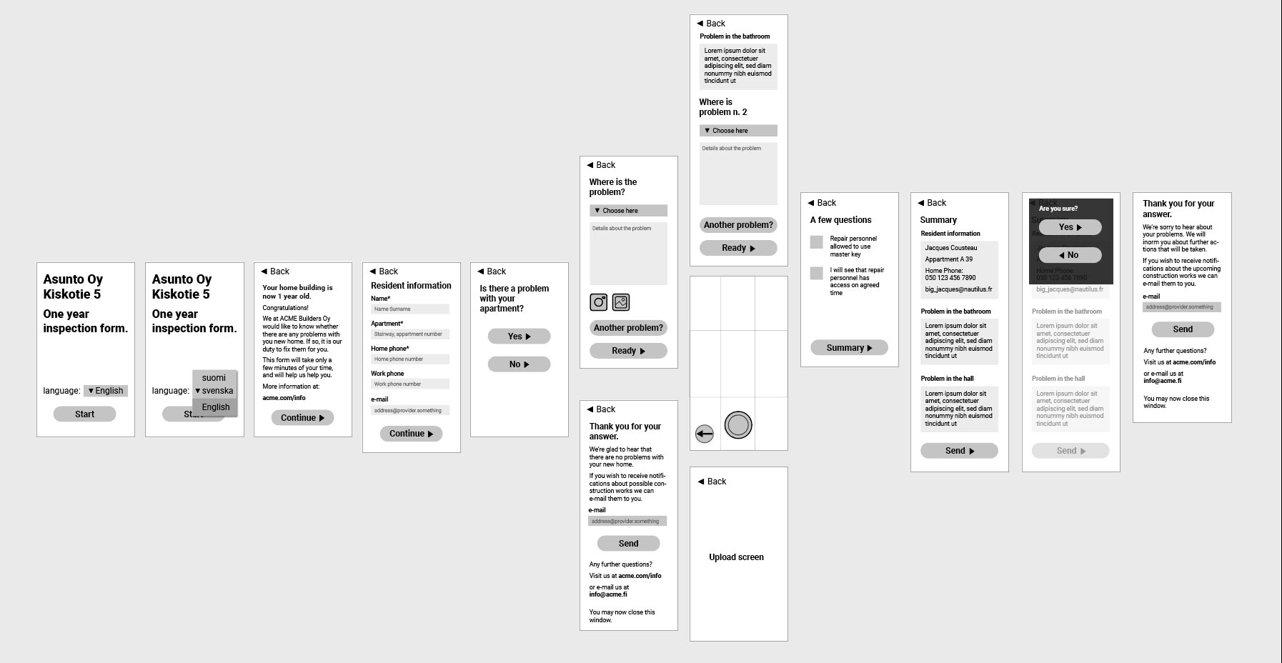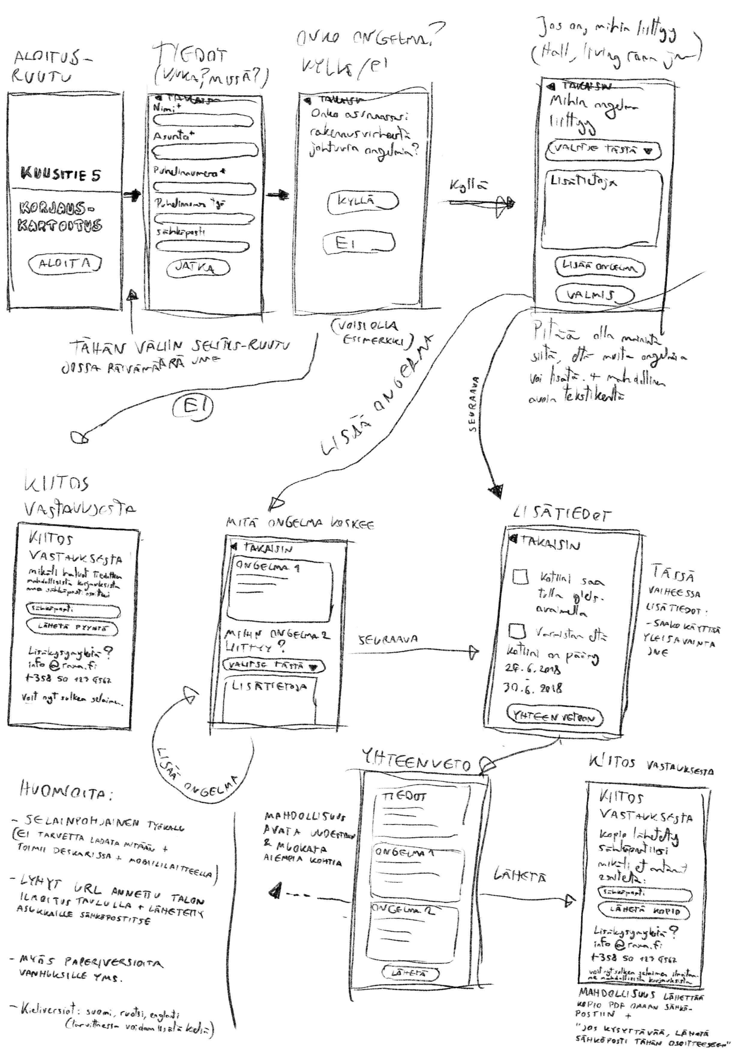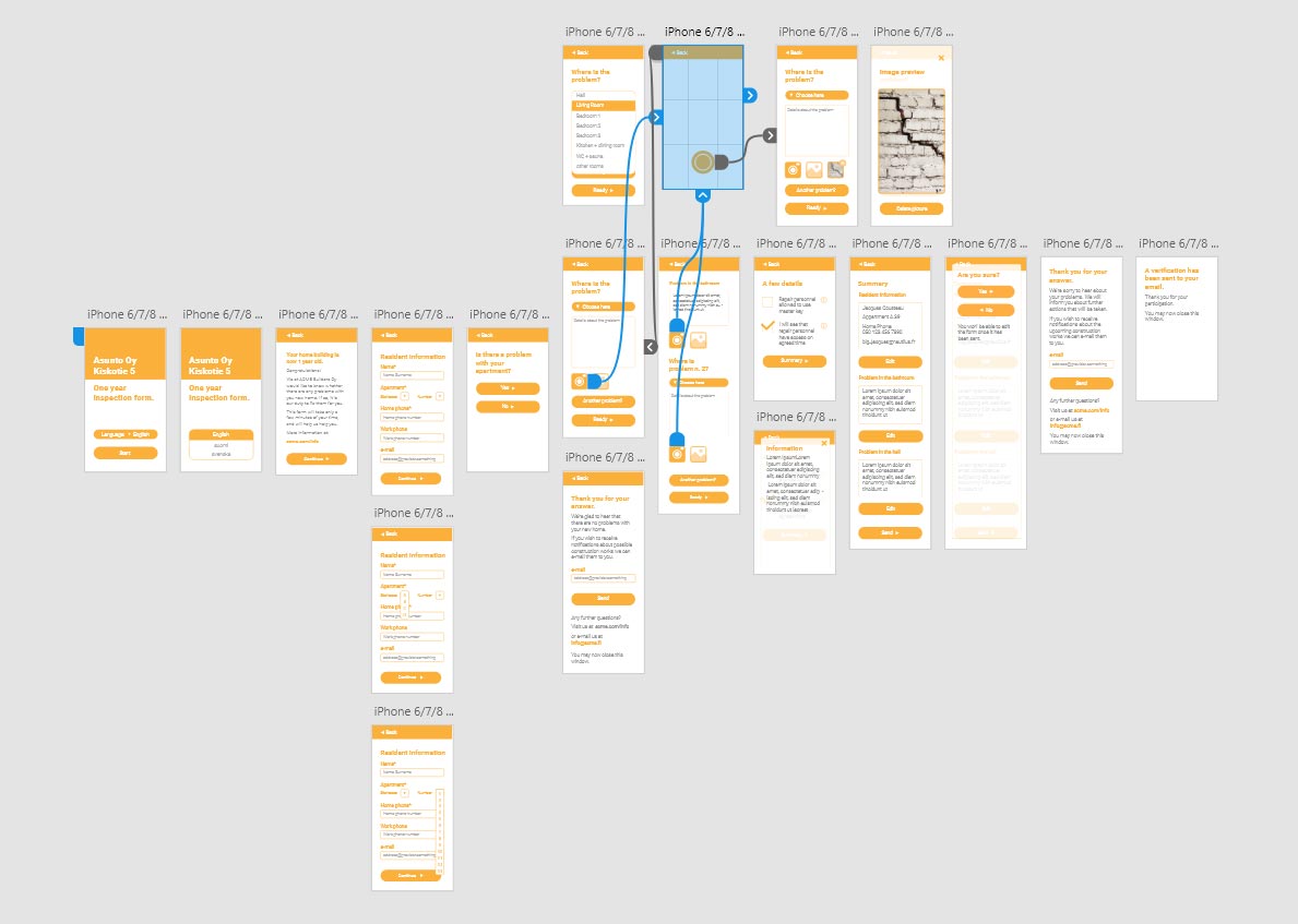 Once I had listed the needs for the website, I started doing user flows and based on them, sketches. The sketches were then turned into wireframes. After making a clickable prototype I user tested it, iterated it and started the UI-design process.