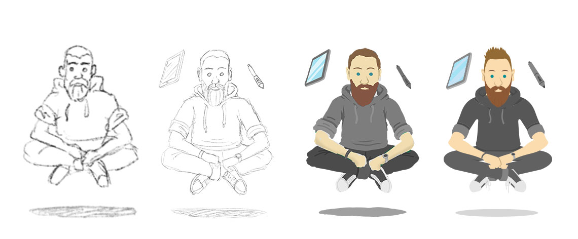 I decided to have a subpage for each category and to add a frontpage with a brief introduction and links to the other pages. I also added an animated illustration of myself meditating in the air. As this was the landingpage, I wanted to leave some kind of a memorable impression, even if the person didn’t check out the rest of the page.