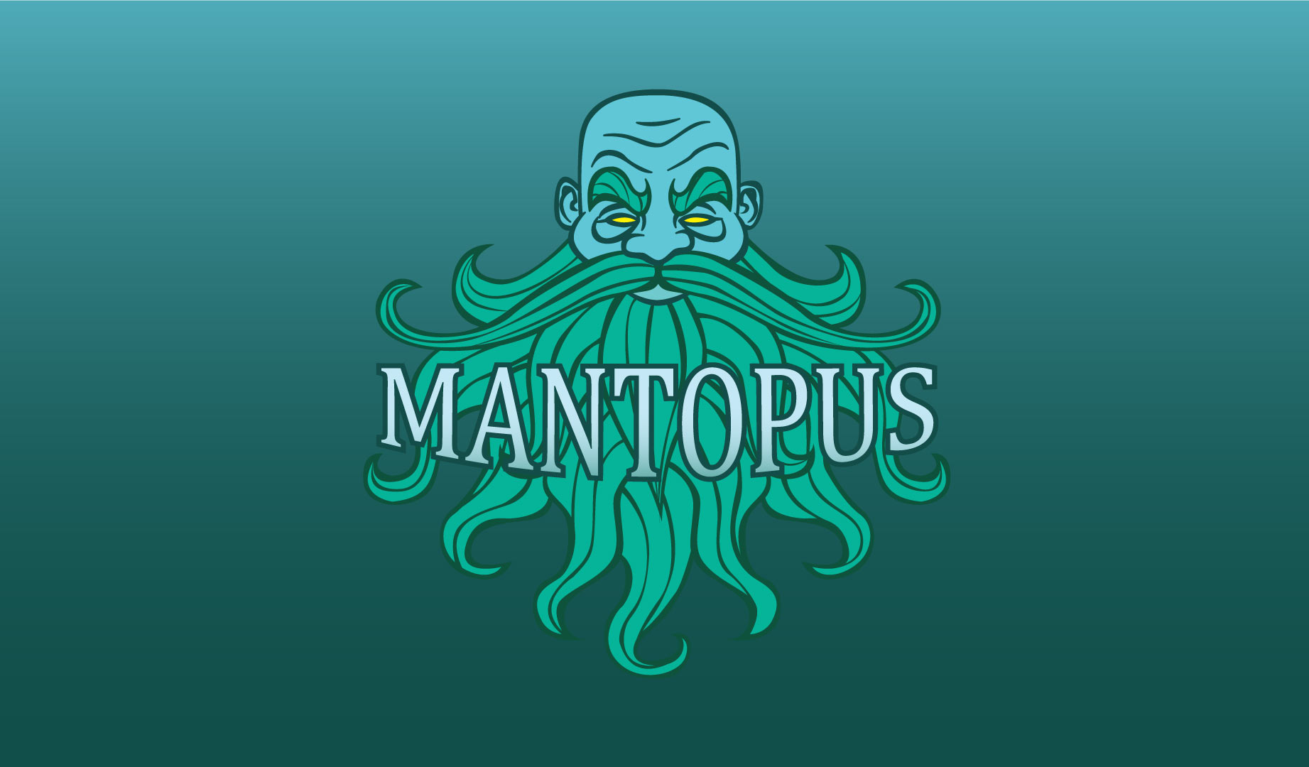 Mantopus is a social media identity I created for making game reviews on youtube and for publishing images and videos of my miniatures online. The idea was that it would be easy to animate the logo by making the beard and moustache move around like tentacles, and to be able to make matching video assets from tentacly moustaches, turquoise color and background babbles. Also the brand is easily extendable to posters, t-shirts and all sorts of marketing material, since the look is so recognizable.